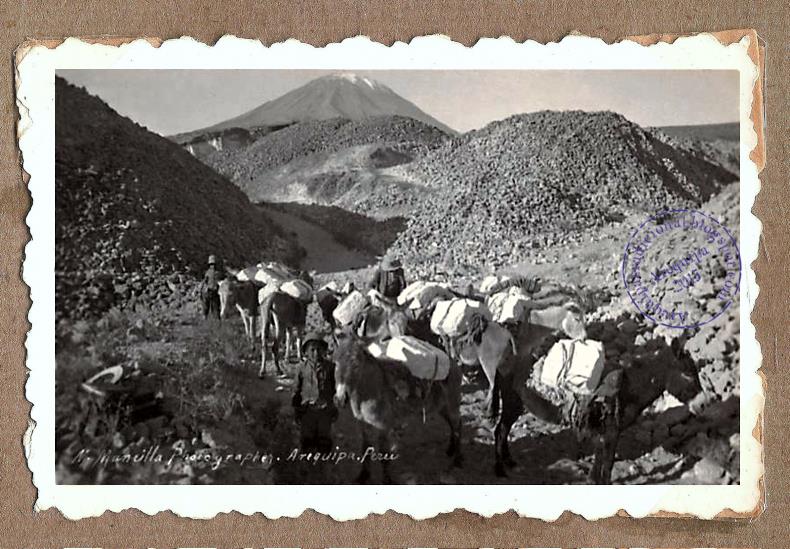 Burros Cargando Sillares Añashuayco, foto: M. Mancilla 1920.